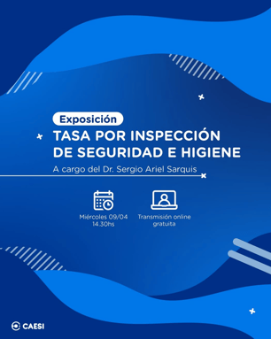 Nuestro Estudio Jurídico especializado en Derecho Tributario, realizó el 09/04 una exposición sobre la "Tasa por Inspección de Seguridad e Higiene" ante CAESI (Cámara de Empresas de Seguridad e Investigación), la cual reúne a mas de doscientas empresas asociadas.
